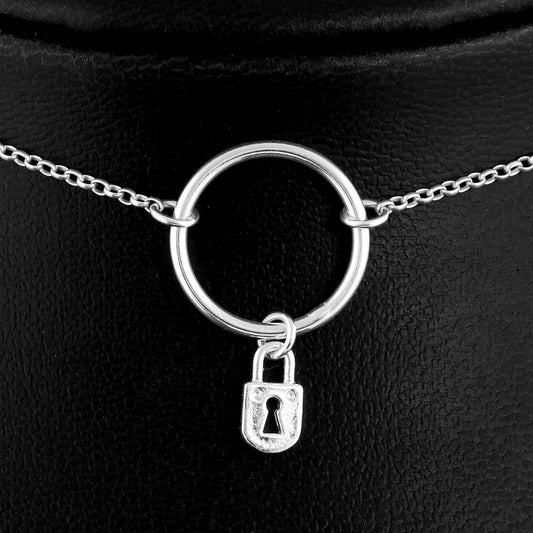 Padlock Charm Medium O Ring Day Collar (Permanently Locking)